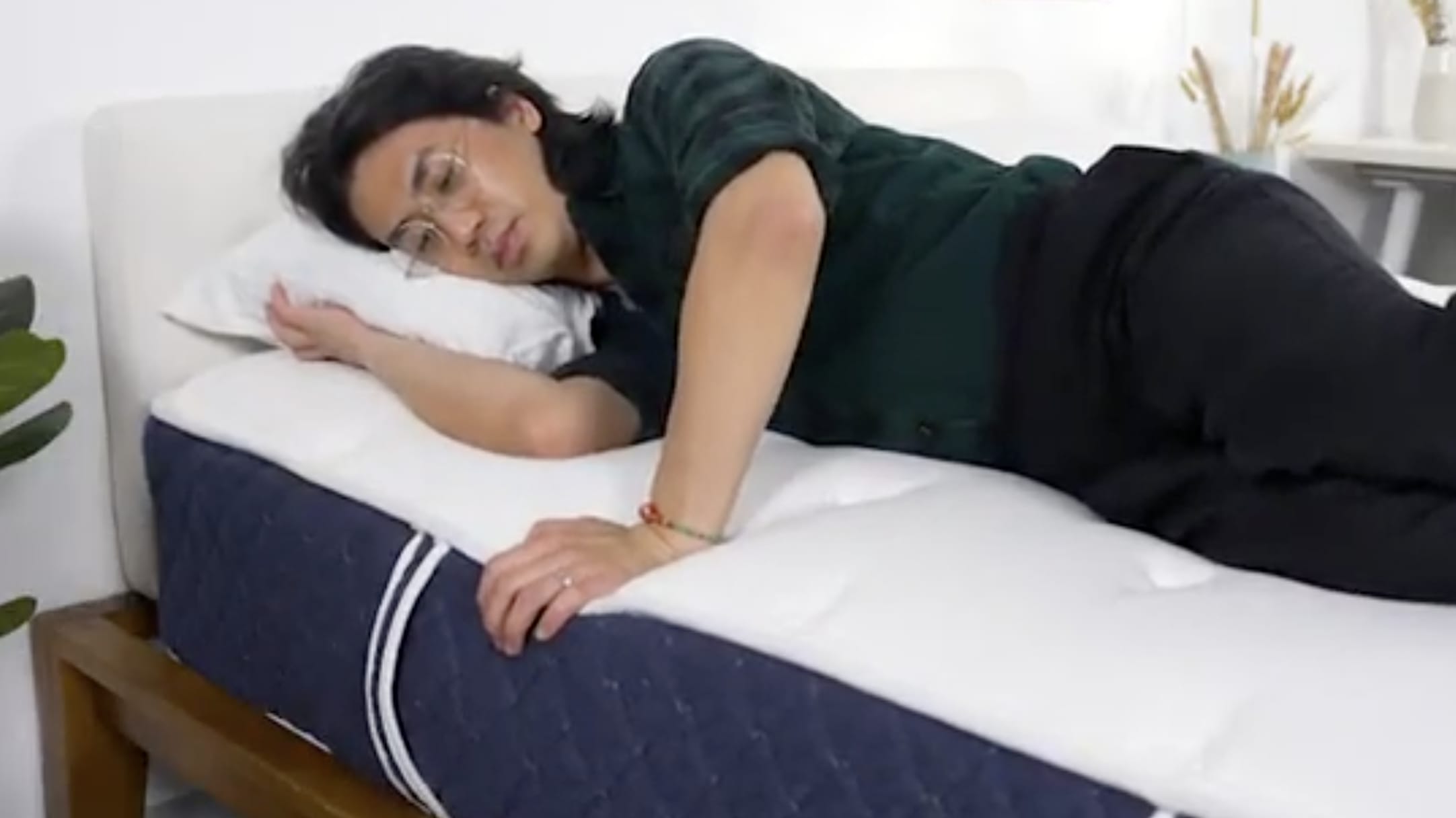 We test each mattress using various sleep positions to observe whether a mattress is better suited for side, back, or stomach sleeping. We roll around the surface and sit on the edges to gauge ease of movement and perimeter support.