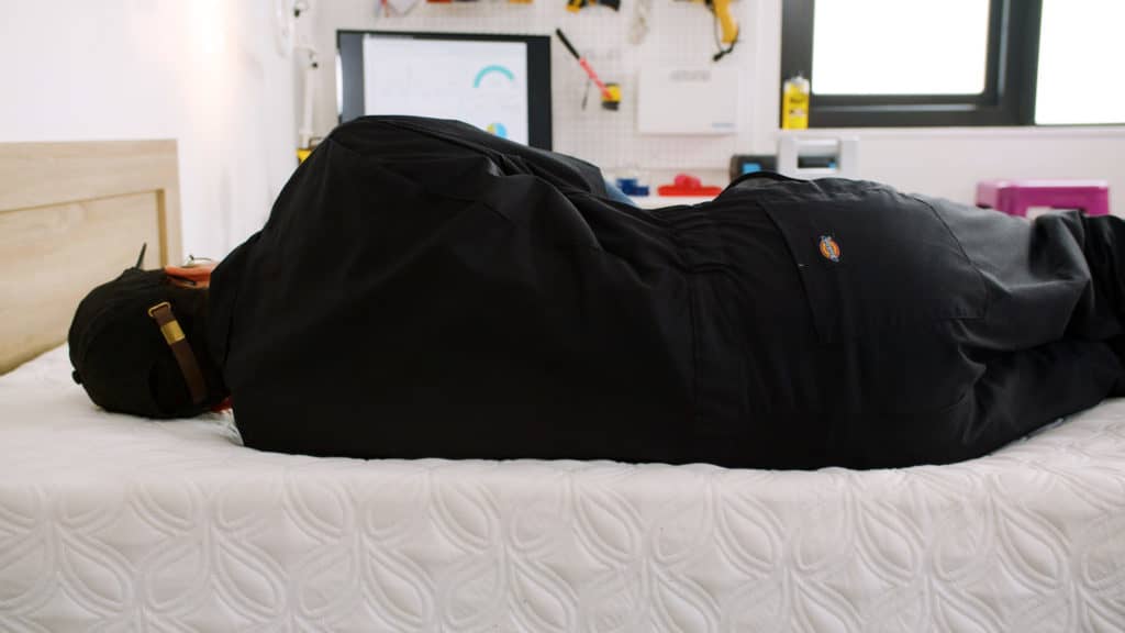 The Cocoon Chill Hybrid isn’t a great fit for most stomach sleepers. While our testing team found that it’s workable for those under 130 pounds, stomach sleepers generally get better support from a firmer mattress. When firmness is lacking, the hips and belly can sink into the foam, drawing the body into a U-shape that can strain muscles in the back.