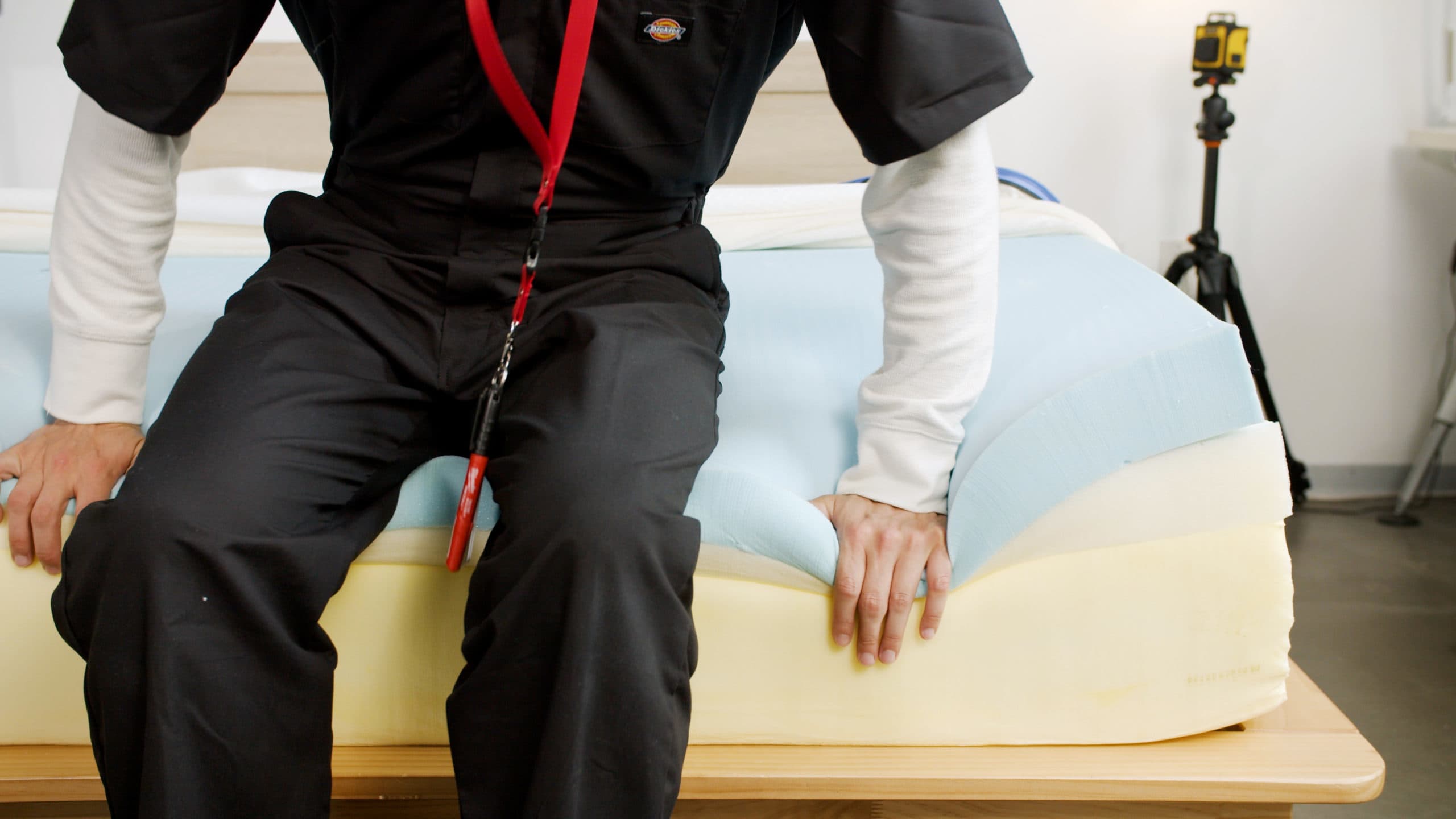 Our testers lie on the surface of each mattress to evaluate factors such as contouring and support. We also use specialized tools to measure performance criteria like pressure relief, heat retention, and motion isolation.