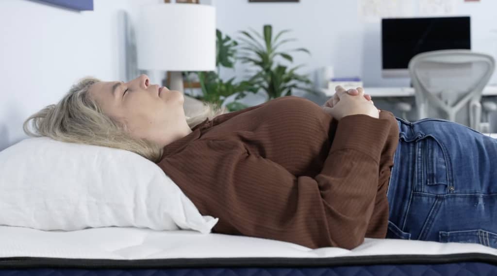 As a back sleeper, I had a great time on the Silk & Snow Hybrid. It’s well-balanced. The foams are pretty comfortable, the coils are nice and supportive, and it stayed cool enough through the night.