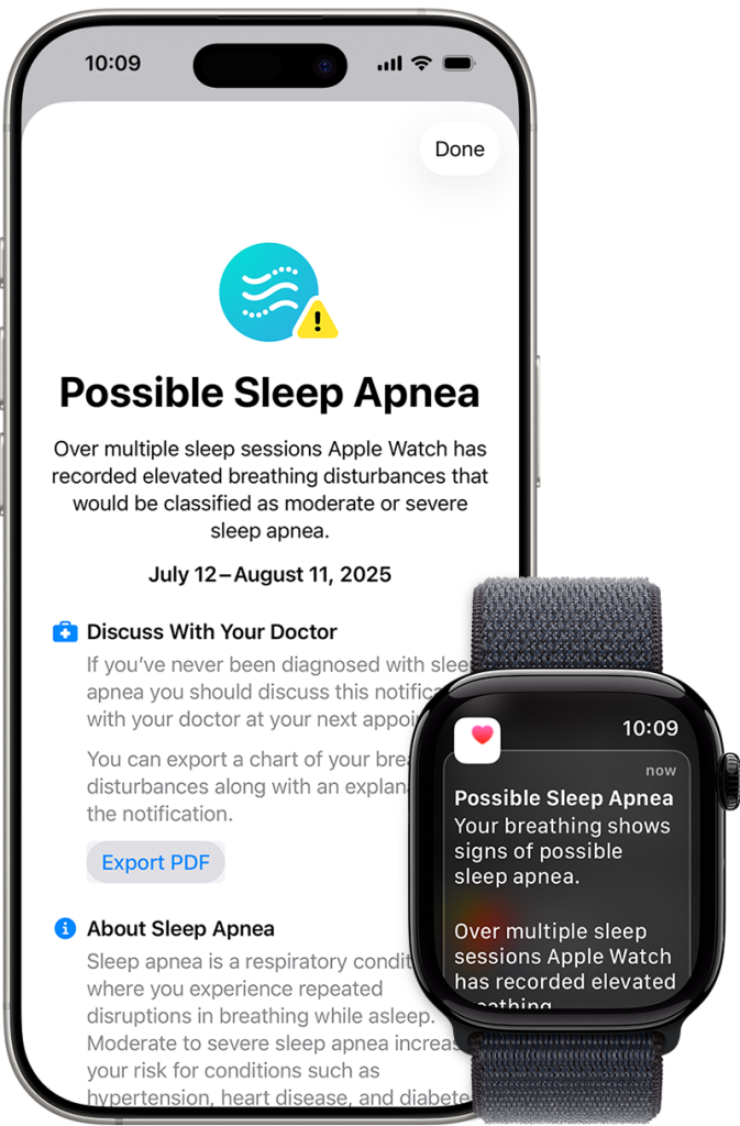 Celmer L. Apple Watch Series 10 features sleep apnea notifications. American Academy of Sleep Medicine – Association for Sleep Clinicians and Researchers. Published September 10, 2024.